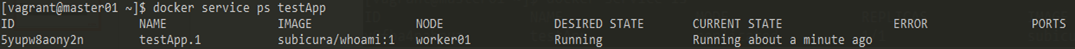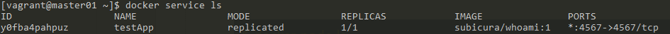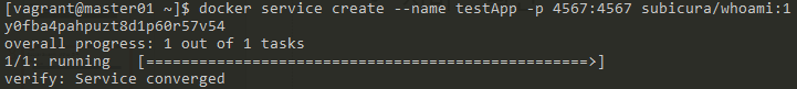 $ docker service create --name testApp -p 4567:4567 subicura/whoami:1