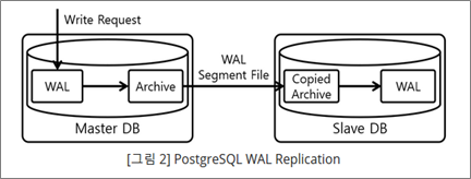 - Master DB는 주기적으로 Archive에 WAL을 주기적으로 복사, Slave DB는 Segment File 단위로 WAL을 복사